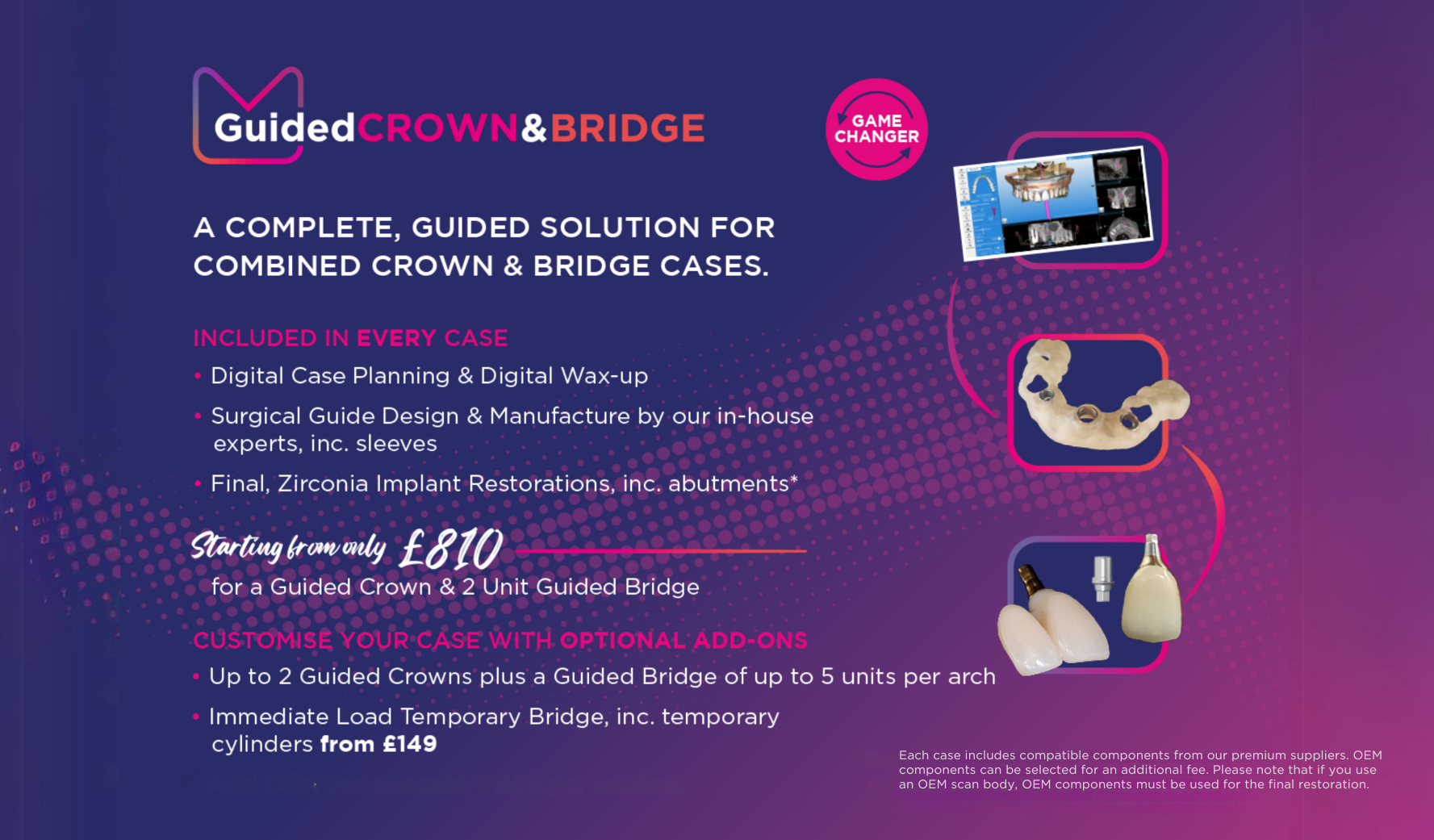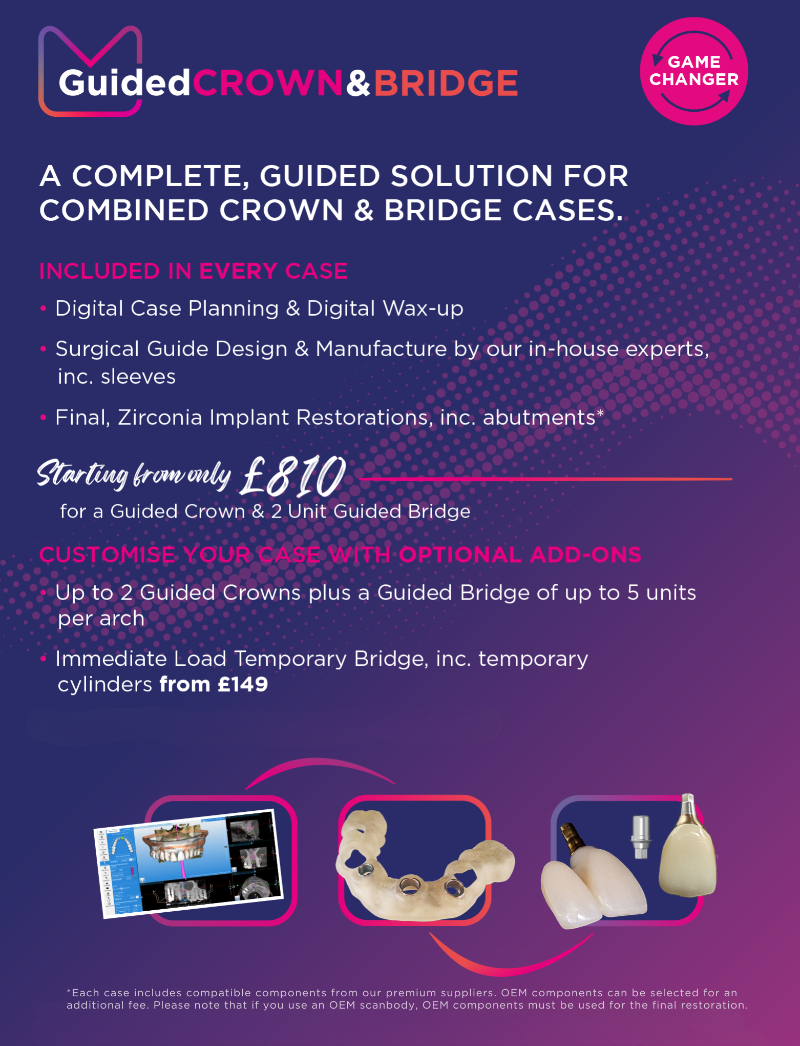 For cases which require both crowns & bridges, we've developed our simple, affordable Guided Crown & Bridge package! Combine our hugely successful Guided Crown with our brand new Guided Bridge products in one, straightforward package, so you can now cater for almost any crown and bridge case with a complete guided package from Quoris3D.
